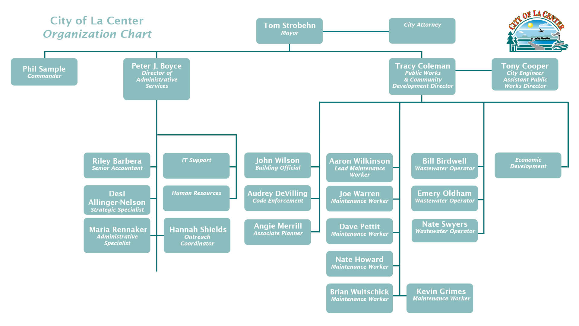 Peter J. Boyce, Director of Administrative Services: pboyce@ci.lacenter.wa.us